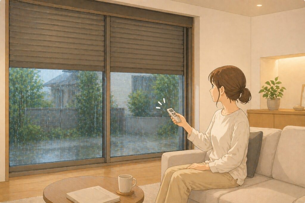 窓のシャッターをリモコンやスイッチで開閉できる電動シャッターは、「毎日の面倒」を確実に減らしてくれるオプションです。